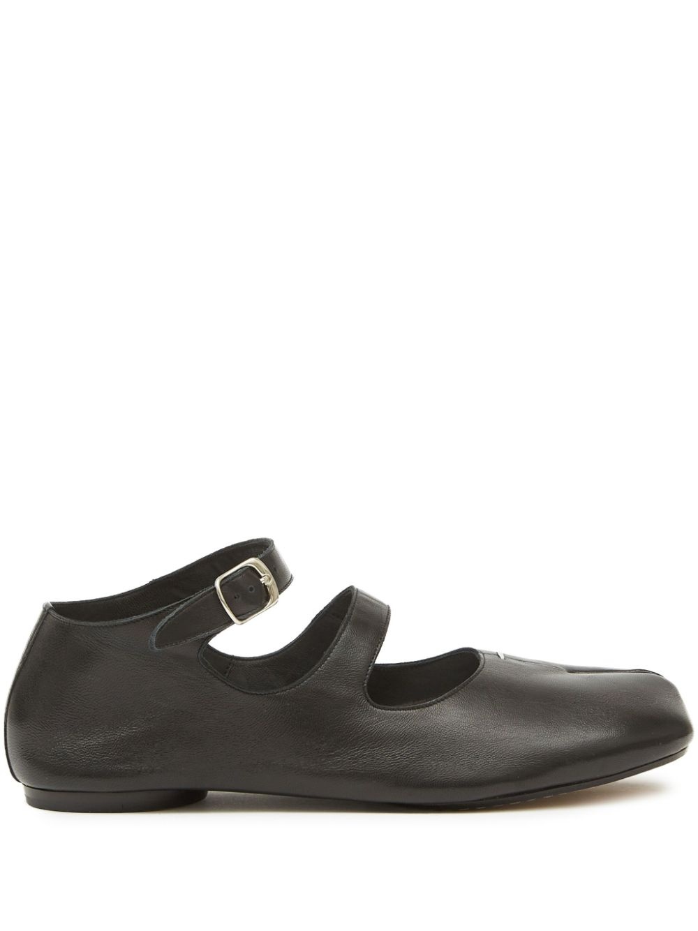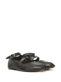 Tabi leather ballerina shoes Founded in 1988, Maison Margiela is a French fashion house known for its unconventional aesthetics. A fine example of its alternative style are these black ballerinas, crafted from leather and designed with the iconic Tabi toe - that features a split between the big toe and the rest of the toes to promote flexibility and provide extra security, comfort, and stability. Highlights - Black - Leather - Buckle-fastening ankle strap - Signature tabi toe - Signature single-stitch logo - Flat sole Made in Italy Composition Sole: Calf Leather 100% Outer: Calf Leather 100% Lining: Calf Leather 100% SIZE & FIT Measurement HEEL 0.39 in(1 cm) Sole height 0.39 in(1 cm)