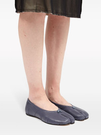 Tabi New leather ballerina shoes Inspired by traditional 15th-century Japanese house shoes, the Tabi silhouette was first introduced by Maison Margiela in 1989 and has since become one of the house's most celebrated styles. The signature split-toe detail is found in these steel-blue ballerina shoes, which are crafted in Italy from smooth leather and branded with a signature white stitch at the rear. Highlights - Steel blue - Calf leather - Smooth grain - Signature tabi toe - Knot detailing - Signature single-stitch logo - Branded leather insole - Flat leather sole - Slip-on style Made in Italy Composition Outer: Lamb Skin 100% Lining: Calf Leather 100% Sole: Calf Leather 100%
