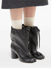 Tabi Balloon 80mm ankle boots Highlights - Black - Calf leather/lambskin - Split toe - Drawstring fastening - High block heel - Ankle-length - Full lining Made in Italy Composition Outer: Lamb Skin 100% Sole: Calf Leather 100% Lining: Calf Leather 100% SIZE & FIT Measurement HEEL 3.14 in(8 cm)