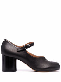 Tabi 60mm Mary Jane pumps Maison Margiela's iconic Tabi toe is inspired by Japanese footwear and has become a signature motif for the label. Crafted in black leather, these pumps sit atop a block heel and feature the label's signature white stitching at the heel. Made in Italy Composition Outer: Ovine Leather (top grain) 100% Lining: Calf Leather 100% Sole: Calf Leather 100% SIZE & FIT Measurement HEEL 2.75 in(7 cm)