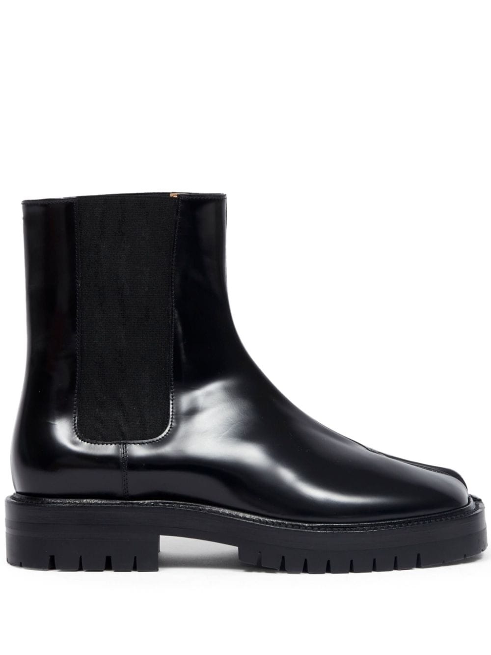 Tabi leather Chelsea boots Highlights - Black - Lambskin - Patent finish - Signature single-stitch logo - Signature tabi toe - Elasticated side panels - Branded leather insole - Ridged rubber sole - Ankle-length - Slip-on style Made in Italy Composition Outer: Calf Leather 100%, Polyester 76%, Rubber 24% Lining: Lamb Skin 100% Sole: Calf Leather 100%, Elastane 100%