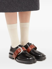 Tabi County leather loafers Highlights - Black/chestnut brown - Calf leather - Signature single-stitch logo - Signature tabi toe - Front lace-up fastening - Buckle fastening - Adjustable strap to the front - Rubber lug sole Made in Italy Composition Leather 100%