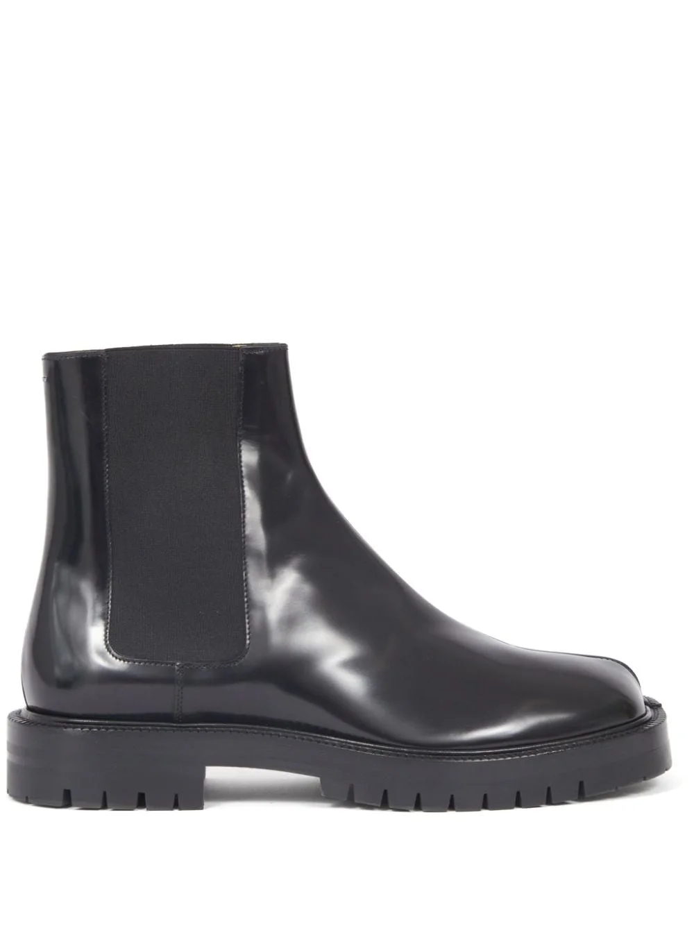 Tabi leather boots Highlights - Black - Lambskin - Calf leather - Signature single-stitch logo - Embroidered logo - Expandable sides - Signature tabi toe - Slip-on style - Chunky sole Made in Italy Composition Lining: Lambskin 100% Sole: Elastane 100% Outer: Calf Leather 100% SIZE & FIT Measurement HEEL 1.37 in(3.5 cm) CIRCUMFERENCE 10.23 in(26 cm) Sole height 0.98 in(2.5 cm) HEIGHT 6.49 in(16.5 cm)