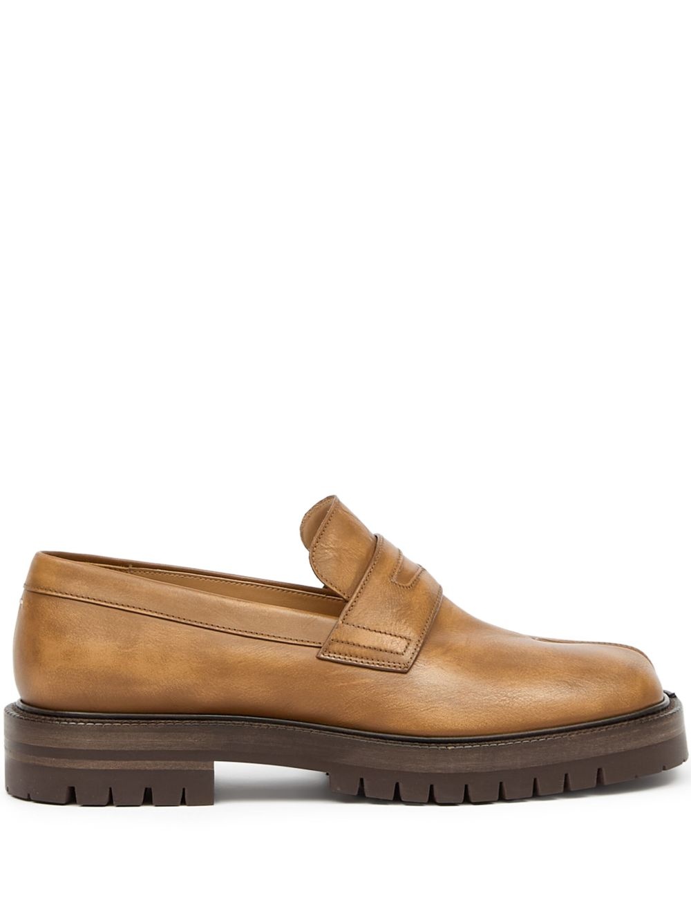 Tabi leather loafers Highlights - Camel brown - Slip-on style - Rubber sole - Signature tabi toe - Penny slot Made in Italy Composition Sole: Rubber 100% Lining: Calf Leather 100% Outer: Calf Leather 100%