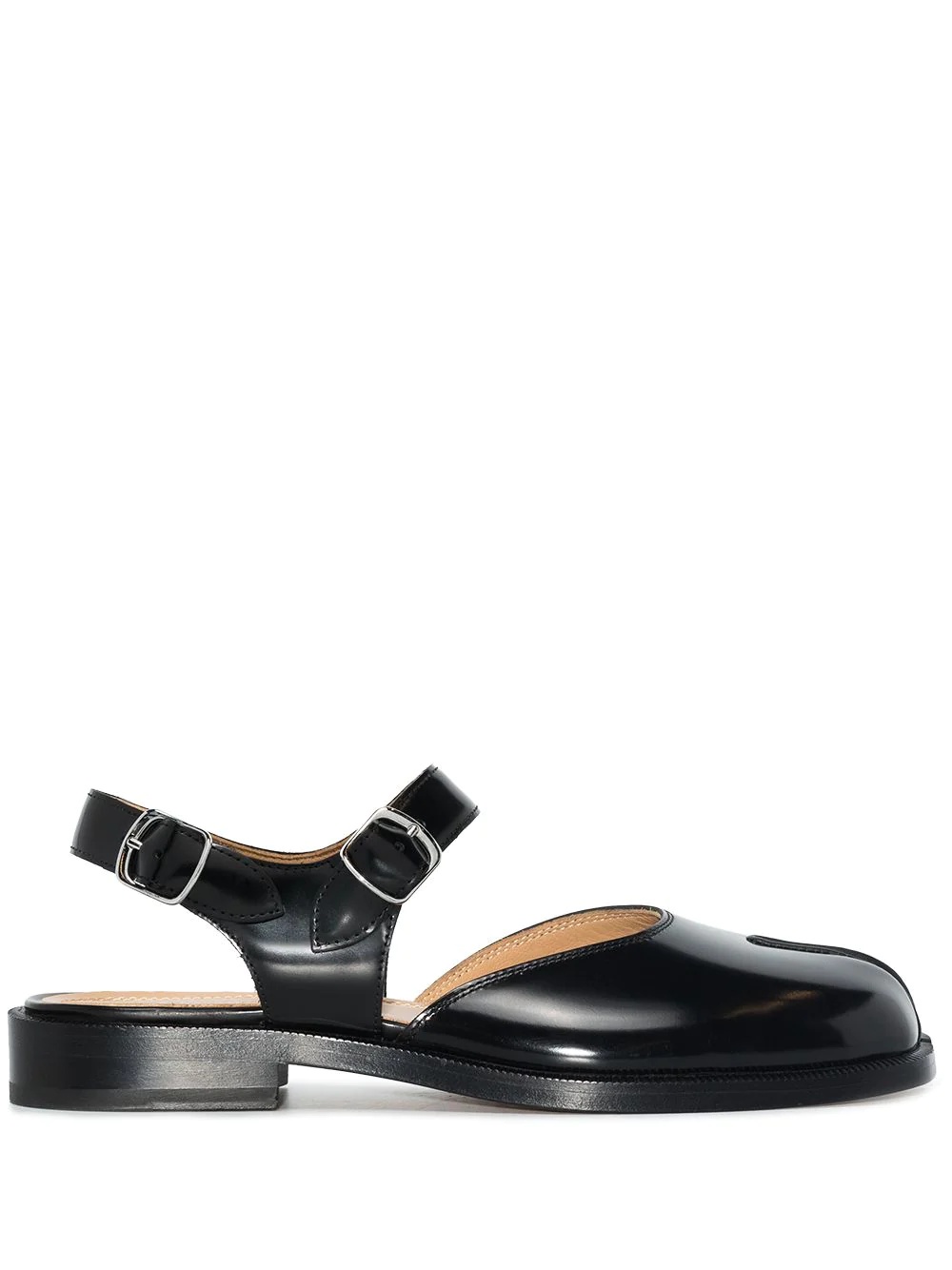 Tabi leather sandals Taking the traditional Japanese split-toe sock, the Tabi has become a Maison Margiela signature staple. It adorns these sandals that have been crafted from brushed leather and feature a buckle-fastening ankle strap. Highlights - Black - Leather - Signature tabi toe - Brushed finish - Buckle-fastening ankle strap - Branded leather insole - Stacked sole Made in Italy Composition Outer: Leather 100% Lining: Leather 100% Sole: Leather 100% SIZE & FIT Model measurements Height 5 ft 9 in(1.76 m) Bust/Chest 33.07 in(84 cm) Hips 38.58 in(98 cm) Waist 24.8 in(63 cm) FittingInformation This piece fits true to size. We recommend you get your regular size Measurement Sole height 0.39 in(1 cm) HEEL 0.98 in(2.5 cm)