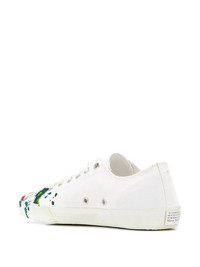 Tabi paint-splatter sneakers The Maison Margiela's iconic Tabi is reworked in this low top white leather sneaker rendition. It features the Maison's logo print on the outer side, finished with goat leather lining and marked with the Maison's logo label, a paint splatter effect and iconic straight white stitch on the back. Made in Italy Composition Cotton 100% SIZE & FIT Measurement Sole height 0.78 in(2 cm)