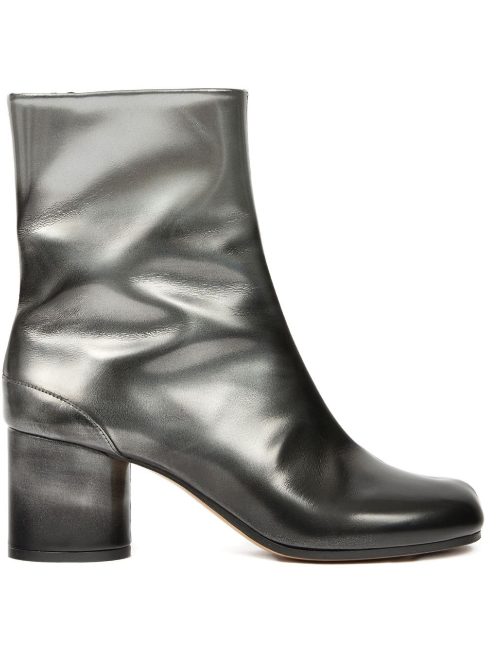 Tabi sleek metallic ankle boots Highlights - Metallic grey - Block heel - Signature tabi toe - Side zip-fastening - Smooth finish Made in Italy Composition Sole: Calf Leather 100% Lining: Calf Leather 100% Outer: Calf Leather 100%