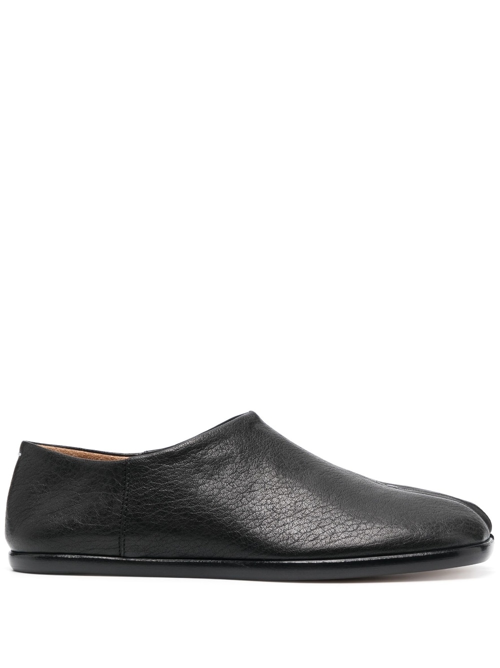 Tabi slip-on loafers Expert craftsmanship, high-quality materials and a minimal aesthetic is a longstanding house code of Maison Margiela, producing refined wardrobe essentials season after season, like these black leather Tabi slip-ons. Featuring a leather insole, signature white stitching to the rear and a flat sole. Highlights - Black - Calf leather - Signature tabi toe - Slip-on style - Branded insole - Flat sole Made in Italy Composition Outer: Calf Leather 100% Lining: Calf Leather 100% Sole: Calf Leather 100% SIZE & FIT Measurement HEEL 0.39 in(1 cm)