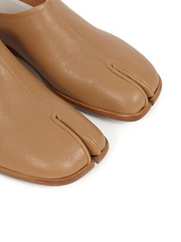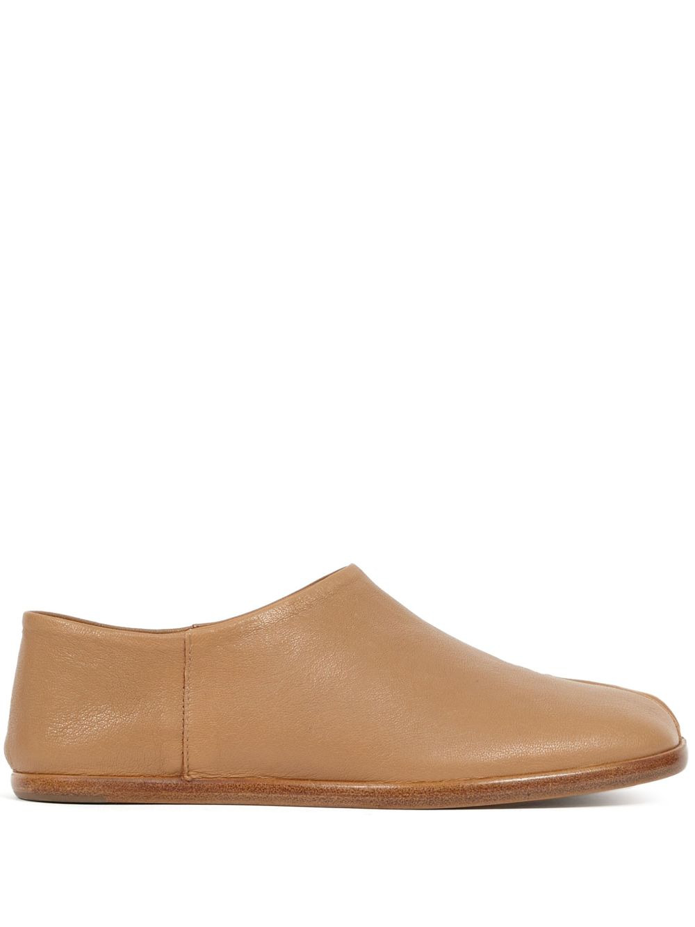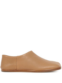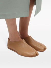 Tabi leather babouche shoes Maison Margiela merges a conceptual vision with iconic house signatures in the elevated construction of these black babouche loafers. Crafted from leather, they're decorated with the brand's instantly recognisable split toe and contrast stitch detailing. Highlights - Nude - Leather - Signature tabi toe - Slip-on style - Flat leather sole Made in Italy Composition Outer: Leather 100% Lining: Leather 100% Sole: Leather 100% SIZE & FIT Model measurements Height 5 ft 11 in(1.8 m) Bust/Chest 31.49 in(80 cm) Hips 36.22 in(92 cm) Waist 25.59 in(65 cm) FittingInformation This piece fits true to size. We recommend you get your regular size Measurement Sole height 0.39 in(1 cm) HEIGHT 2.2 in(5.6 cm)