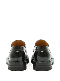 Tabi leather loafers Set atop a ridged rubber sole, these loafers from Maison Margiela are crafted from black smooth calf leather. The pair is characterised by the brand's signature Tabi toe, inspired by Japan's 15th century silhouettes. Highlights - Black - Calf leather - Signature single-stitch logo - Signature tabi toe - Penny slot - Slip-on style - Branded leather insole - Ridged rubber sole Made in Italy Composition Outer: Calf Leather 100% Sole: Calf Leather 100% Lining: Lamb Skin 100% SIZE & FIT Measurement HEEL 1.57 in(4 cm) Sole height 0.98 in(2.5 cm)