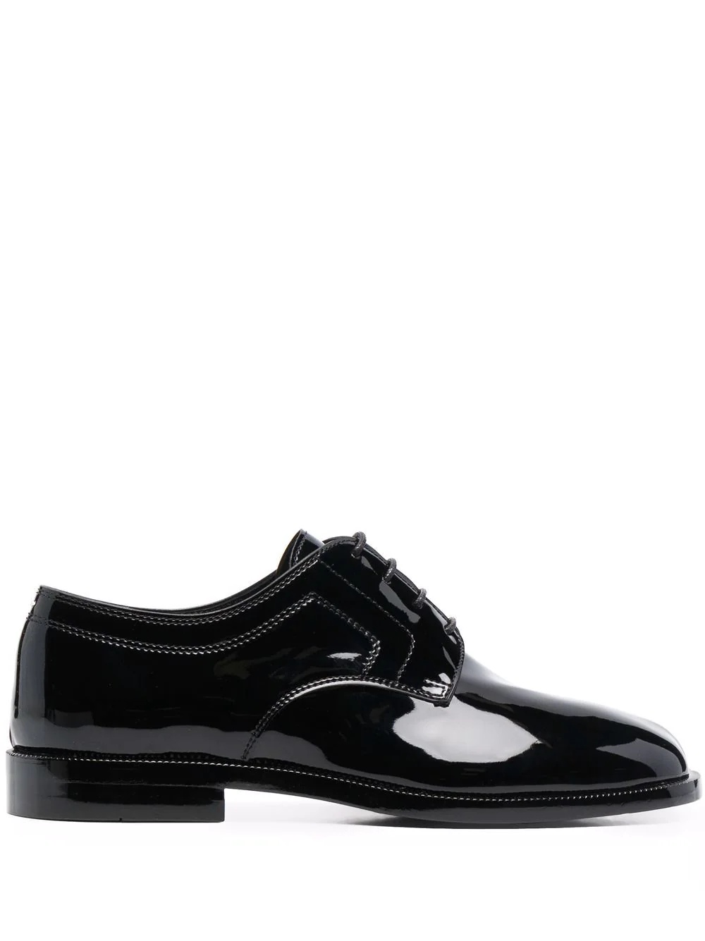 Tabi patent-leather brogues Inspired by traditional Japanese socks worn with thonged footwear, Maison Margiela debuted the Tabi toe in 1989. Currently, the style is an instantly recognisable signature of the brand. In a black hue, these lace-up shoes have the iconic style as the main focus. Highlights - Black - Leather - Signature tabi toe - Front lace-up fastening - Polished finish - Flat sole Made in Italy Composition Outer: Leather 100% Sole: Leather 100% Lining: Leather 100% SIZE & FIT Measurement HEEL 0.78 in(2 cm)