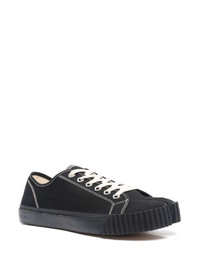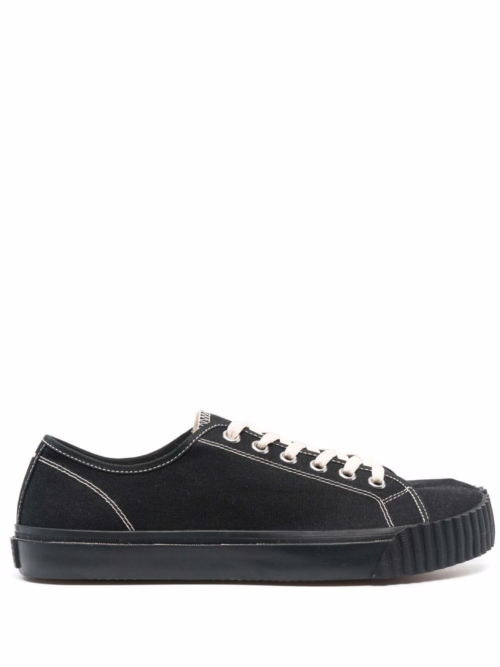 Tabi low-top sneakers Produced in a tonal design, Maison Margiela's low-top sneakers display two archival elements. They feature the recognisable Tabi toe, first debuted in 1988 and influenced by traditional Japanese work shoes. Additionally, the tongue is printed with the brand's signature number motif, indicating the product line to which they belong. Made in Italy Composition Outer: Cotton 100% Lining: Cotton 100%, Goat Skin 100% Sole: Rubber 100% SIZE & FIT FittingInformation This piece fits large – take one size down Measurement Sole height 0.98 in(2.5 cm)