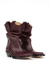 Tabi Western 55mm leather boots Highlights - Bordeaux red - Calf leather - Signature single-stitch logo - Signature tabi toe - Ruched detailing - Slip-on style - Ankle-length - Double pull-tab at the opening - 55mm low heel Made in Italy Composition Outer: Calf Leather 100% Sole: Leather 100% Lining: Calf Leather 100%