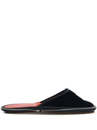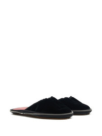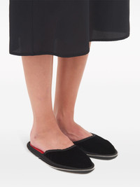 Travel round-toe slippers Highlights - Jet black - Calf leather - Velvet finish - Tonal stitching - Round toe - All-around zip fastening - Slip-on style - Branded insole - Flat sole - Quilted lining Made in Italy Composition Outer: Calf Leather 100%, Rayon 65%, Cupro 35% Sole: Calf Leather 100%, Rubber 100% Lining: Polyester 100%, Calf Leather 100%