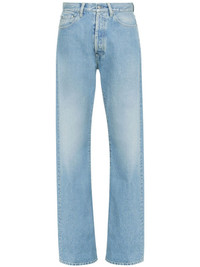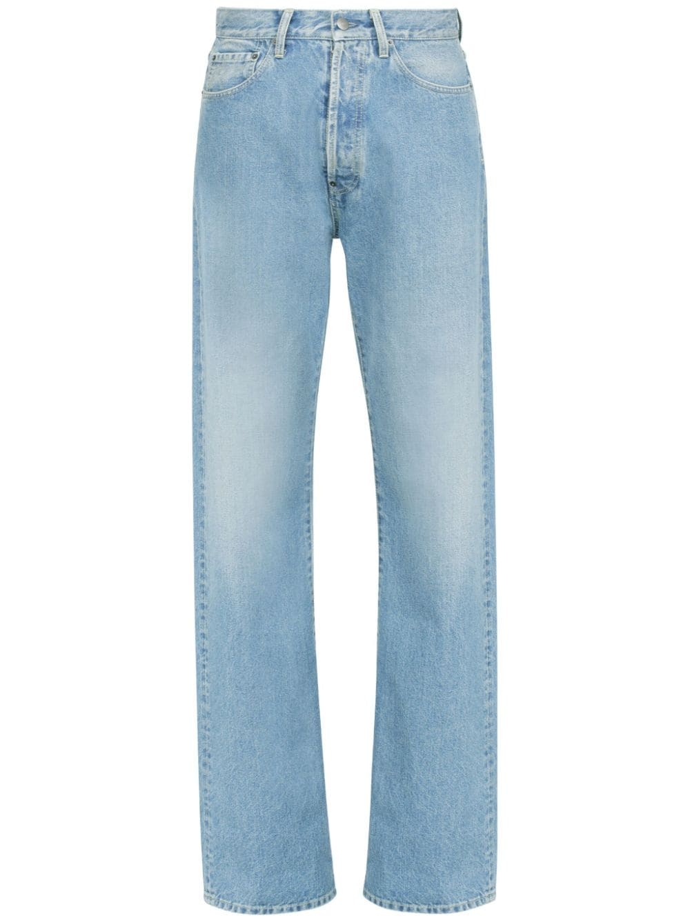 turn-up straight-leg jeans Highlights - Light blue - Cotton - Washed denim - Rivet detailing - Mid-rise - Concealed fly and button fastening - Belt loops - Straight leg - Classic five pockets - Long length - Turn-up hem Made in Italy Composition Cotton 100%