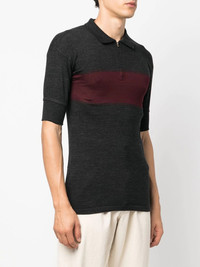 two-tone zip-up polo shirt dark grey/dark red wool-cotton blend fine knit two-tone design ribbed edge short front zip fastening polo collar short sleeves straight hem Imported Composition Wool 72%, Polyamide 18%, Cotton 10% SIZE & FIT Model measurements Height 5 ft 11 in(1.8 m) Bust/Chest 31.49 in(80 cm) Hips 36.22 in(92 cm) Waist 25.59 in(65 cm) FittingInformation This piece fits true to size. We recommend you get your regular size Cut for a slim fit Made with a mid-weight fabric Washing instructions Machine Wash