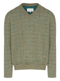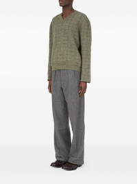 V-neck grid-pattern wool sweater Highlights - Olive green - Wool - Grid pattern - V-neck Made in Italy Composition Virgin Wool 100% Washing instructions Read Manufacturer Guidelines