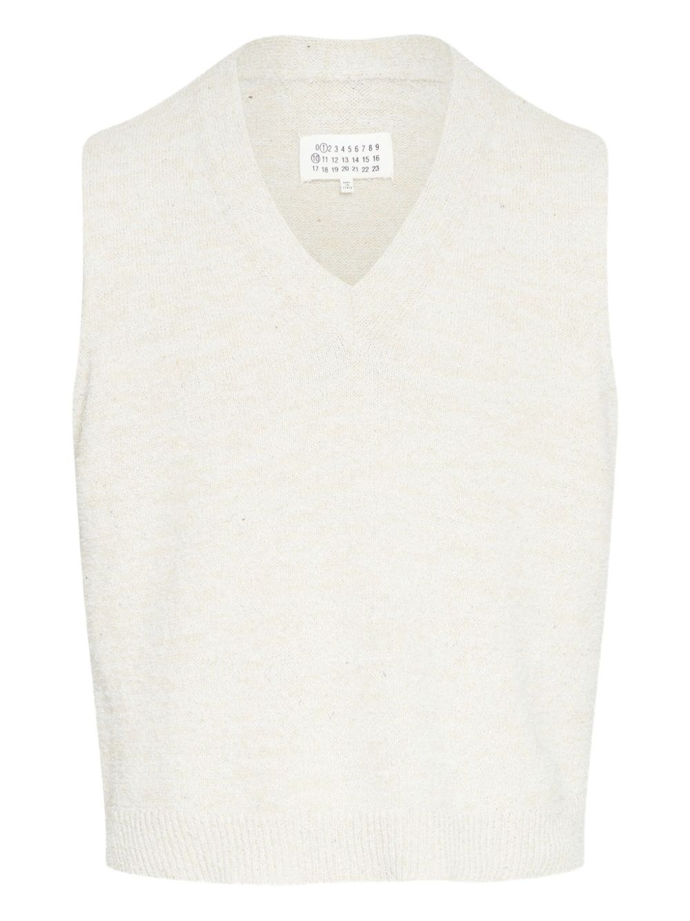 v-neck sleeveless knit vest Highlights - Beige - V-neckline - Ribbed trim - Sleeveless design - Relaxed fit Made in Italy Composition Cotton 84%, Wool 9%, Polyamide 7% Washing instructions Read Manufacturer Guidelines