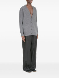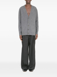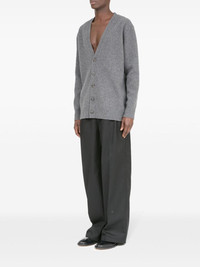 V-neck wool cardigan Highlights - Medium grey - Wool - Fine knit - Melange effect - V-neck - Front button fastening - Drop shoulder - Long sleeves - Ribbed trim - Straight hem Made in Italy Composition Wool 100% SIZE & FIT FittingInformation Designed for a relaxed fit, this piece allows for comfort and movement when worn The ribbed hem offers a close, comfortable fit Made with a midweight knit, this piece offers some stretch