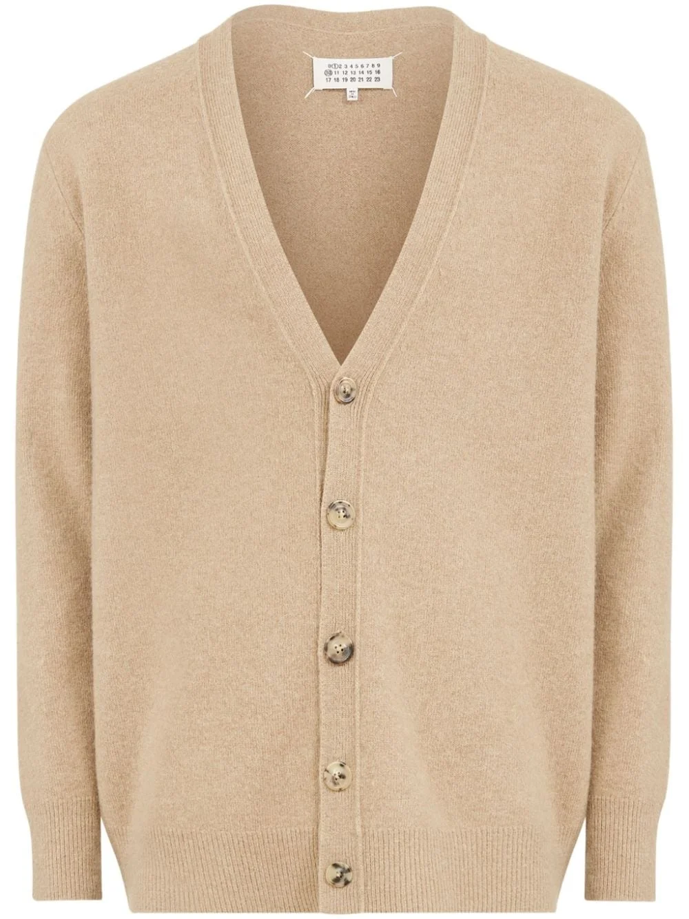 V-neck wool cardigan Highlights - Beige - Wool - Fine knit - V-neck - Front button fastening - Long sleeves - Ribbed hem - Signature four-stitch logo Made in Italy Composition Wool 100% SIZE & FIT FittingInformation Designed for a relaxed fit, this piece allows for comfort and movement when worn The ribbed hem offers a close, comfortable fit Made with a midweight knit, this piece offers some stretch
