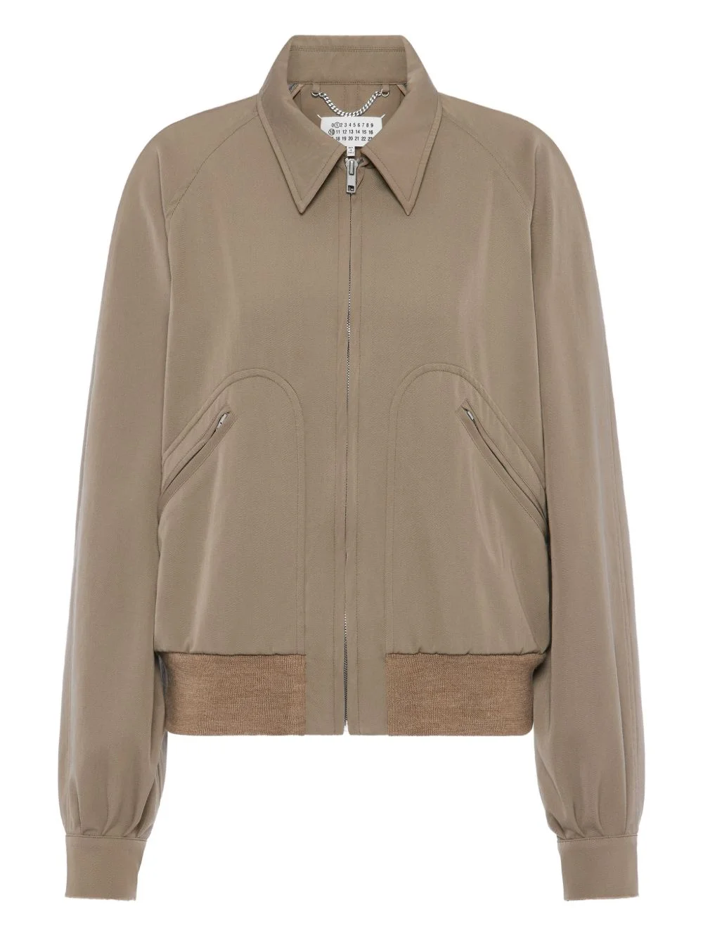 virgin-wool bomber jacket Highlights - Taupe - Zip fastening - Ribbed trims - Zip pockets - Point collar - Long sleeves Made in Italy Composition Virgin Wool 100% Washing instructions Read Manufacturer Guidelines
