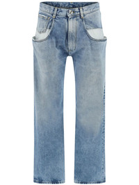 contrast-pocket straight-leg jeans Seen through a degrade lens, Maison Margiela’s AW18 collection was inspired by the concept of dressing in reverse. The collection's theme is visible in these classic denim cotton bootcut jeans. Highlights - Light blue - Cotton - Washed denim - Classic five pockets - Bootcut Made in Italy Composition Outer: Cotton 100% Lining: Cotton 100% Washing instructions Machine Wash