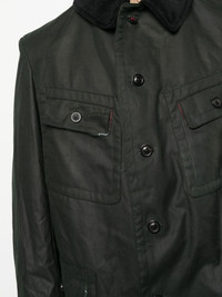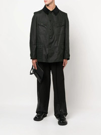 waxed cotton jacket Highlights - Military green - Wax/cotton - Coated finish - Classic collar - Front button fastening - Four front patch pockets - Long sleeves - Straight hem Made in Italy Composition Outer: Cotton 100%, Wax 100% Lining: Cotton 100% SIZE & FIT Model measurements Height 5 ft 11 in(1.8 m) Bust/Chest 31.49 in(80 cm) Hips 35.82 in(91 cm) Waist 24.8 in(63 cm) FittingInformation This piece fits true to size. We recommend you get your regular size Cut for a loose fit Made with a mid-weight non-stretch fabric Washing instructions Do Not Wash/Do Not Dry Clean