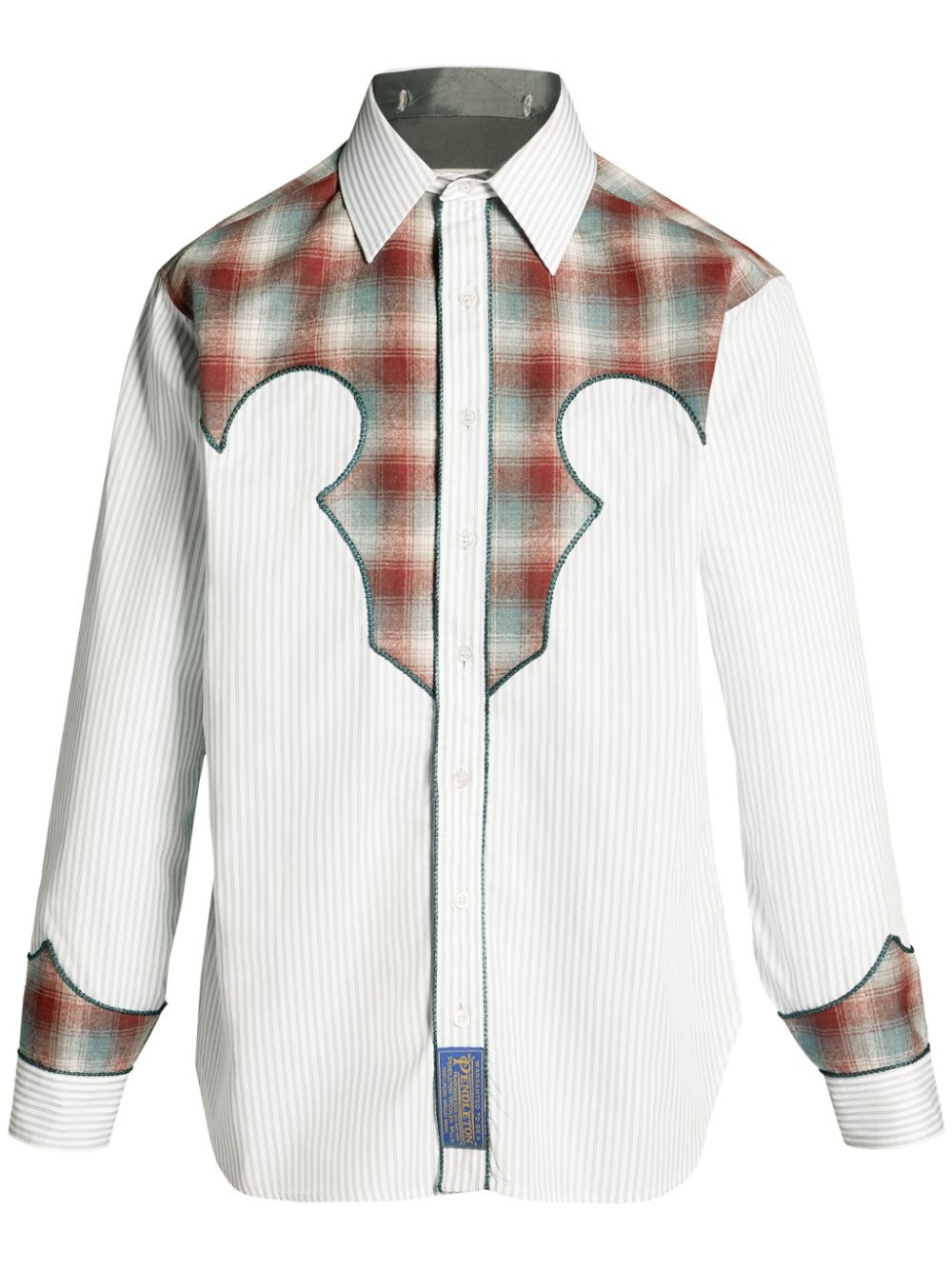 x Pendleton yoke-detail striped shirt Highlights - Light grey/multicolour - Cotton - Western style - Plaid check pattern - Vertical stripe pattern - Logo patch to the front - Classic collar - Front button fastening - Long sleeves - Buttoned cuffs - Curved hem Made in Italy Composition Outer: Cotton 100% Lining: Viscose 100% SIZE & FIT Model measurements Height 6 ft 2 in(1.87 m) Bust/Chest 35.82 in(91 cm) Hips 35.43 in(90 cm) Waist 27.95 in(71 cm) Washing instructions Dry Clean Only
