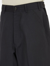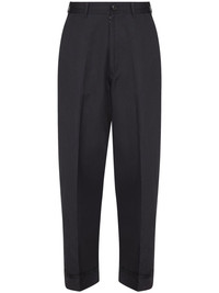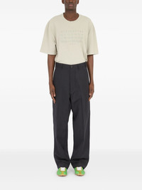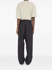 wide-leg trousers Highlights - Dark grey - Front button and zip fastening - Two rear patch pockets - Belt loops - Signature four-stitch logo Made in Italy Composition Virgin Wool 65%, Linen/Flax 35%