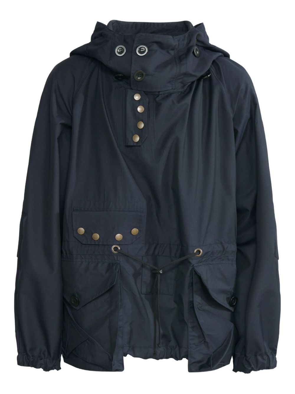 wind-proof sports jacket Highlights - Navy blue - High neck - Classic hood - Drawstring waist - Two front cargo pockets Made in Italy Composition Virgin Wool 60%, Polyamide 40% Washing instructions Read Manufacturer Guidelines