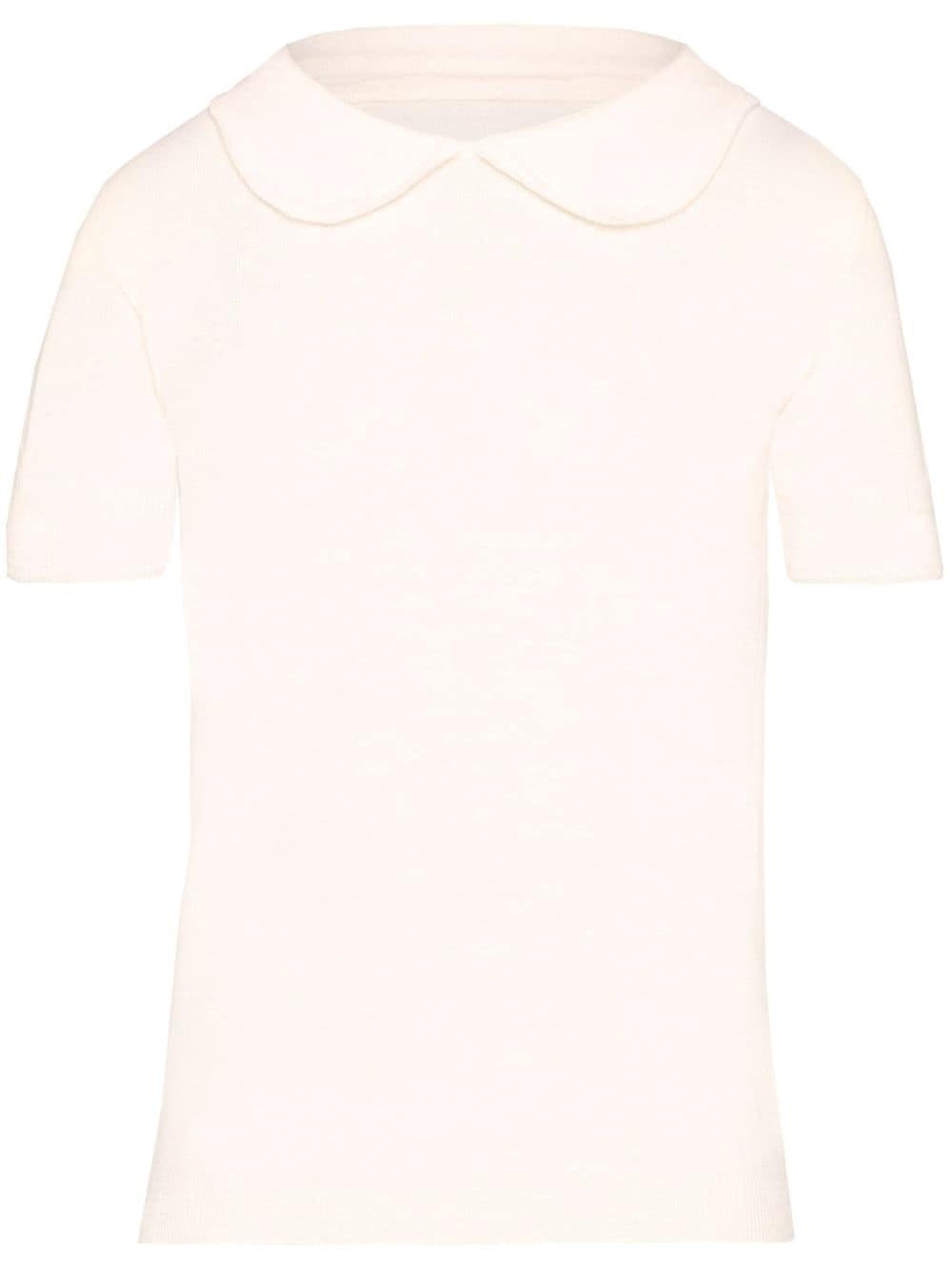 wool-cashmere blend top Highlights - Light pink - Wool-cashmere blend - Rounded collar - Short sleeves - Ribbed cuffs and hem Made in Italy Composition Wool 55%, Cashmere 45% Washing instructions Read Manufacturer Guidelines