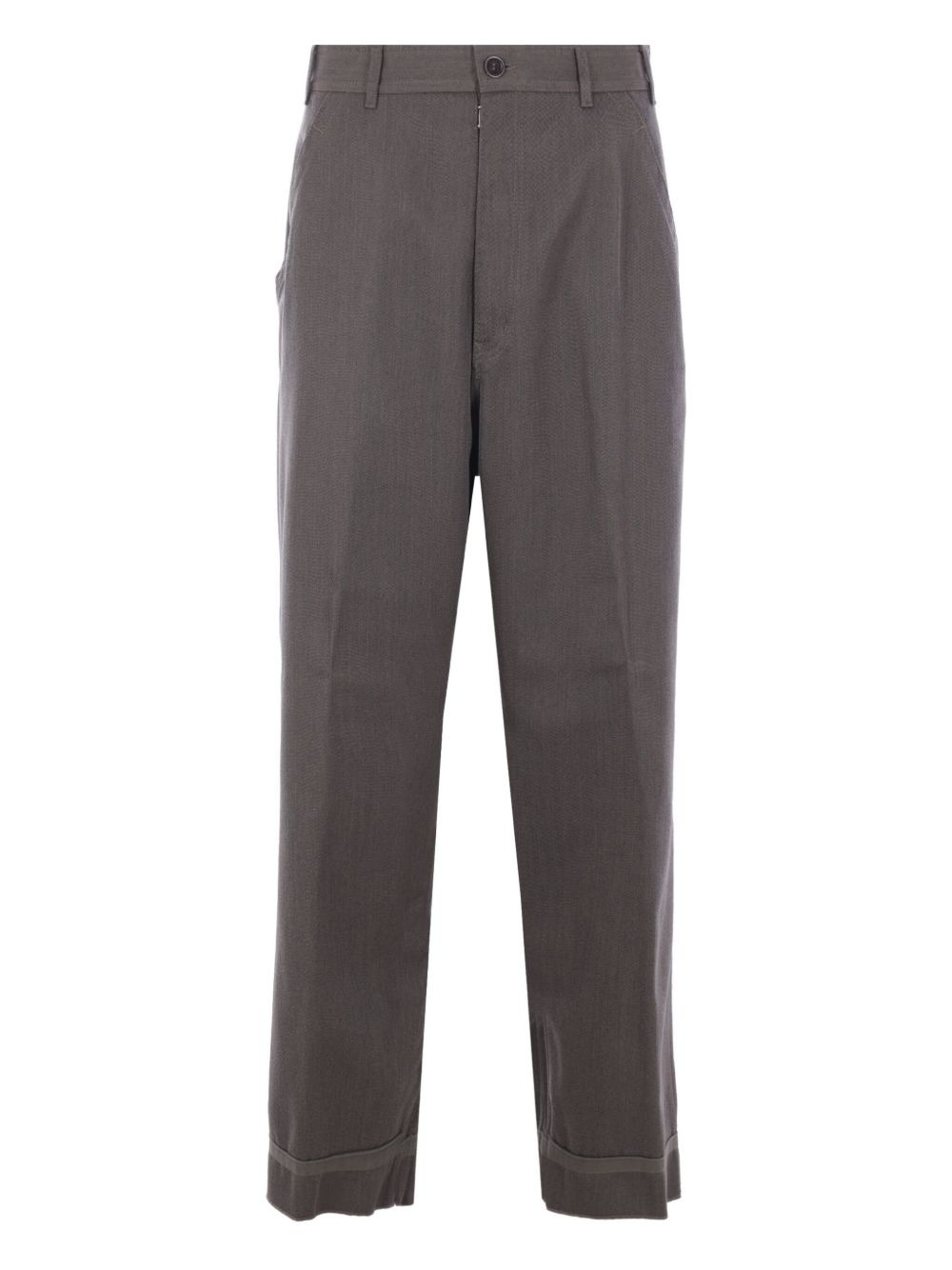 wool cuffed trousers Highlights - Grey - Twill texture - Button fly - Side pockets - Cuffed hems - Straight leg Imported Composition Virgin Wool 100%, Polyester 65%, Cotton 35% Washing instructions Read Manufacturer Guidelines