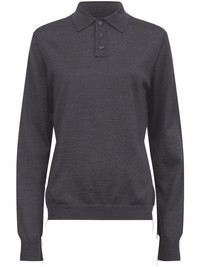 wool polo jumper Highlights - Charcoal grey - Wool - Fine knit - Short front button fastening - Polo collar - Long sleeves - Signature four-stitch logo - Decorative stitching - Ribbed cuffs and hem - When buying this unisex item, keep in mind that it is graded in standard men's sizing. Made in Italy Composition Wool 100%