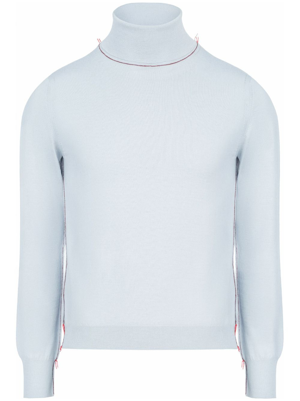 Work-In-Progress high-neck jumper Highlights - Light blue - Wool - Decorative stitching - Contrast stitching - Roll neck - Long sleeves - Straight hem Made in Italy Composition Wool 100% SIZE & FIT Model measurements Height 5 ft 10 in(1.77 m) Bust/Chest 29.92 in(76 cm) Hips 34.25 in(87 cm) Waist 23.62 in(60 cm) Measurement BUST 37 in(94 cm) LENGTH 22.83 in(58 cm) SLEEVE LENGTH 24.01 in(61 cm) Shoulder Width 14.96 in(38 cm) FittingInformation Designed for a slim fit that sits just away from the body offering a close yet comfortable fit Made with a lightweight knit, this piece offers some stretch This piece fits true to size – take your usual size Washing instructions Dry Clean Only