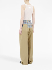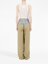x Pendleton yoke-detail trousers Highlights - Beige - Yoke design - Check pattern - Pleat detailing - Signature four-stitch logo - Logo patch to the rear - Front button and zip fastening - Wide leg - Long length - Straight hem Made in Italy Composition Outer: Wool 100%, Polyester 60%, Cotton 40% Lining: Polyester 65%, Cotton 35%
