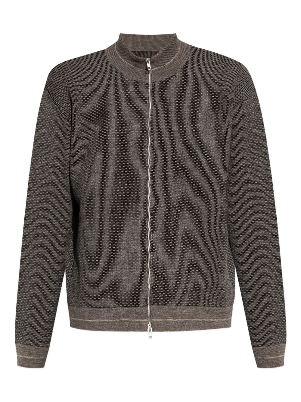 zip-front wool cardigan Highlights - Brown - Wool - Zip fastening - High neck - Long sleeves - Ribbed hem Made in Italy Composition Wool 98%, Polyamide 2% Washing instructions Read Manufacturer Guidelines
