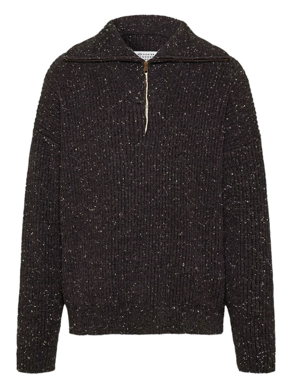 zip-neck textured knit sweater