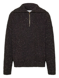 zip-neck textured knit sweater Highlights - Dark grey - Ribbed texture - Zip neck - Wide collar - Long sleeves Imported Composition Linen/Flax 65%, Wool 35%