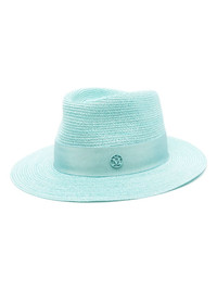 Andre interwoven fedora hat Highlights - Aqua blue - Straw - Interwoven design - Grosgrain ribbon trim - Tonal logo plaque - Centre-dent crown - Curved narrow brim - Pull-on style Made in Italy Composition Straw 100% SIZE & FIT Measurement BRIM 2.55 in(6.5 cm) CIRCUMFERENCE 21.65 in(55 cm)