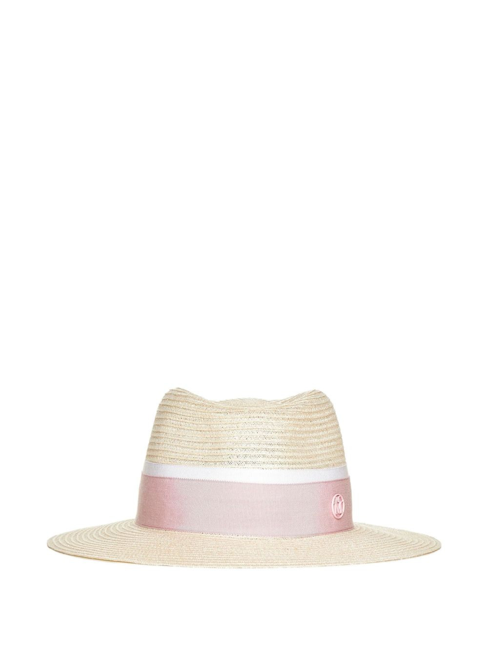 Andre straw Fedora hat Creativity, innovation and traditional craftsmanship are at the helm of French milliner Maison Michel. The hat-maker tops it all off with their signature ‘M’ moniker. This pink straw hat from Maison Michel features a pink and white grosgrain headband with logo detail and a ribbed design. Imported Composition Hemp 100% SIZE & FIT Measurement BRIM 2.36 in(6 cm) CIRCUMFERENCE 22.44 in(57 cm)
