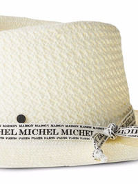Andre woven logo-trim hat white paper interwoven design logo trim flat brim Imported Composition Paper 100%