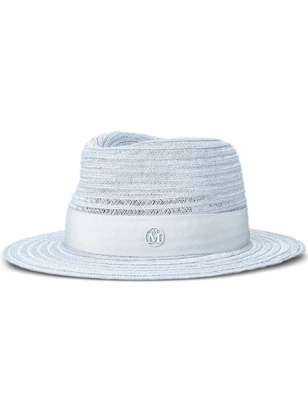 Andre straw fedora hat Highlights - Ice blue - Straw - Interwoven design - Centre-dent crown - Flat brim - Grosgrain ribbon trim - Applique logo - Pull-on style Imported Composition Straw 100%, Cotton 100%