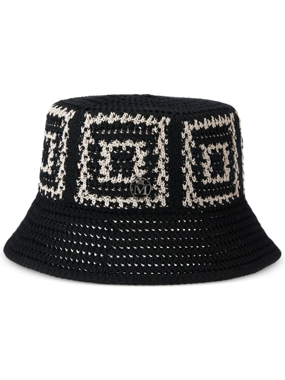 Axel crochet bucket hat Highlights - Black/beige - Cotton blend - Crochet knit - Flat crown - Silver-tone logo plaque - Dropped wide brim Made in Italy Composition Cotton 95%, Polyamide 5% SIZE & FIT Measurement BRIM 2.36 in(6 cm) CIRCUMFERENCE 21.65 in(55 cm)