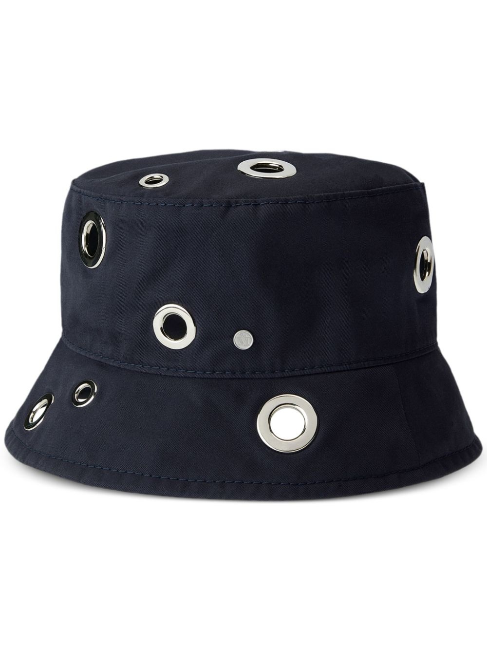 Axel eyelet-detail bucket hat Highlights - Navy blue - Cotton - Eyelet detailing - Flat peak - Narrow brim - Slip-on style Made in Italy Composition Cotton 100% Washing instructions Specialist Cleaning