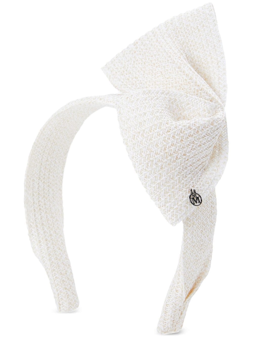 Beth interwoven design headband Highlights - Cloud white - Interwoven design - Bow detailing - Logo charm - Slip-on style Made in France Composition Plastic 100%, Paper 48%, Straw 37%, Polyester 15%