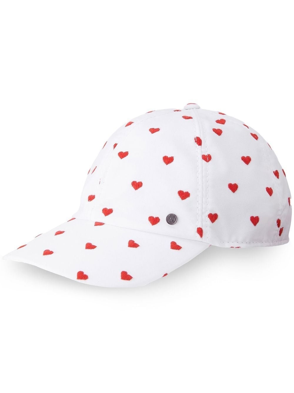 heart-print cap white/red cotton logo charm tonal stitching all-over graphic print six-panel construction curved peak Made in Italy Composition Cotton 90%, Polyester 10% Lining: Cotton 100% Washing instructions Read Manufacturer Guidelines