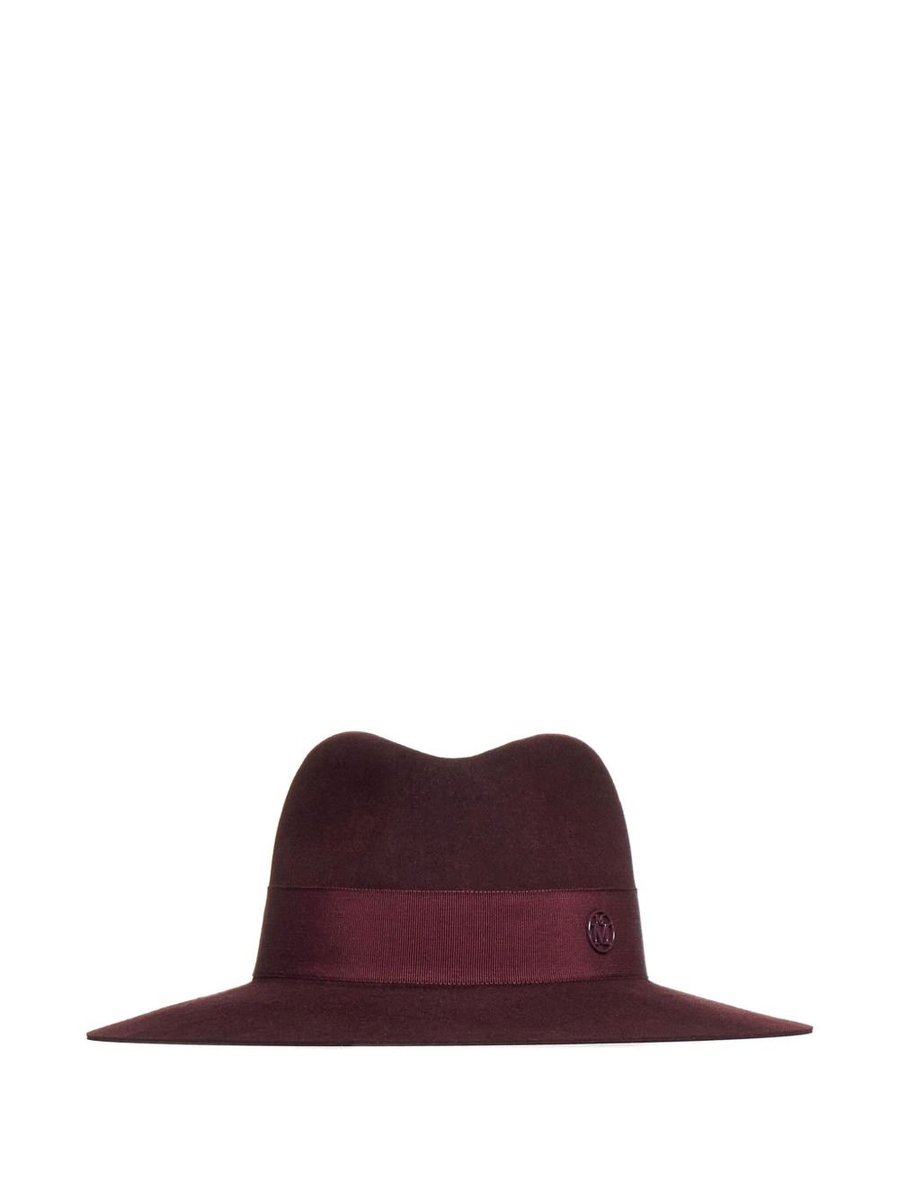 Henrietta felt Fedora hat Burgundy wool felt fedora from Maison Michel featuring an upturned brim and strap band with logo charm. Imported Composition Wool Felt 100% Washing instructions Do Not Wash/Do Not Dry Clean