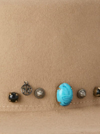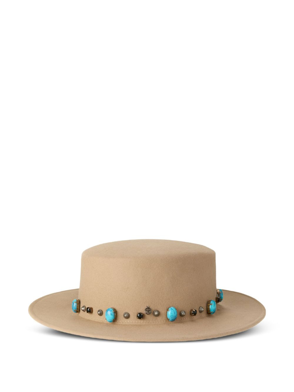 logo-plaque hat Highlights - Beige - Pull-on style - Flat crown - Wide brim Made in Italy Composition Zamak 100%, glass 100%, Turquoise 100% Outer: Wool Felt 100%