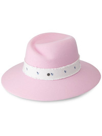 Virginie felt fedora hat Highlights - Bubblegum pink - Wool felt/cotton - Logo plaque - Floral print grosgrain ribbon trim - Wide brim - Concave crown - Slip-on style Imported Composition Wool 100%, Cotton 100%