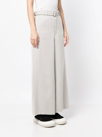 belted wide-leg trousers light grey wool blend wide leg logo patch to the rear high waist belted waist concealed front fastening two thigh-high side slits two rear welt pockets Imported Composition Viscose 42%, Polyester 30%, Wool 28% SIZE & FIT Model measurements Height 5 ft 10 in(1.78 m) Bust/Chest 33.07 in(84 cm) Hips 33.85 in(86 cm) Waist 25.19 in(64 cm) FittingInformation This piece fits true to size. We recommend you get your regular size Designed to be fitted at the waist, loose over the leg Made with a mid-weight non-stretch fabric Washing instructions Machine Wash
